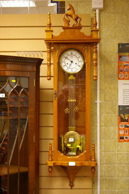 Well made modern Vienna style wall clock with plaque 'Made by Richard Owen, Bangor, 1983'