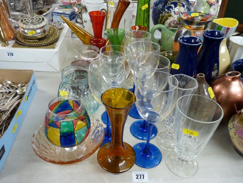 Parcel of mixed glassware including milk glass vases, drinking glassware etc