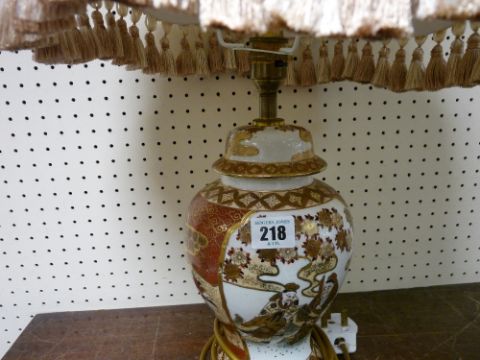 Oriental decorated table lamp with shade