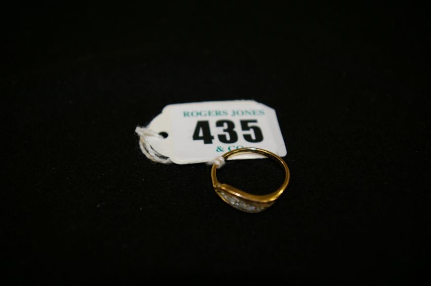 Gold dress ring with five tiny diamonds, 2.2 grms gross, marks worn