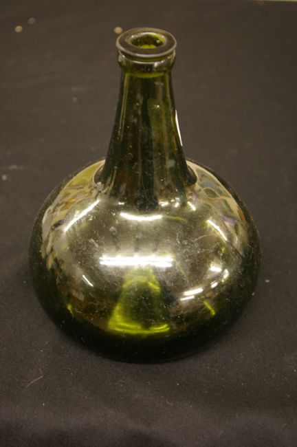 Antique green glass wine bottle with deep set snapped pontil