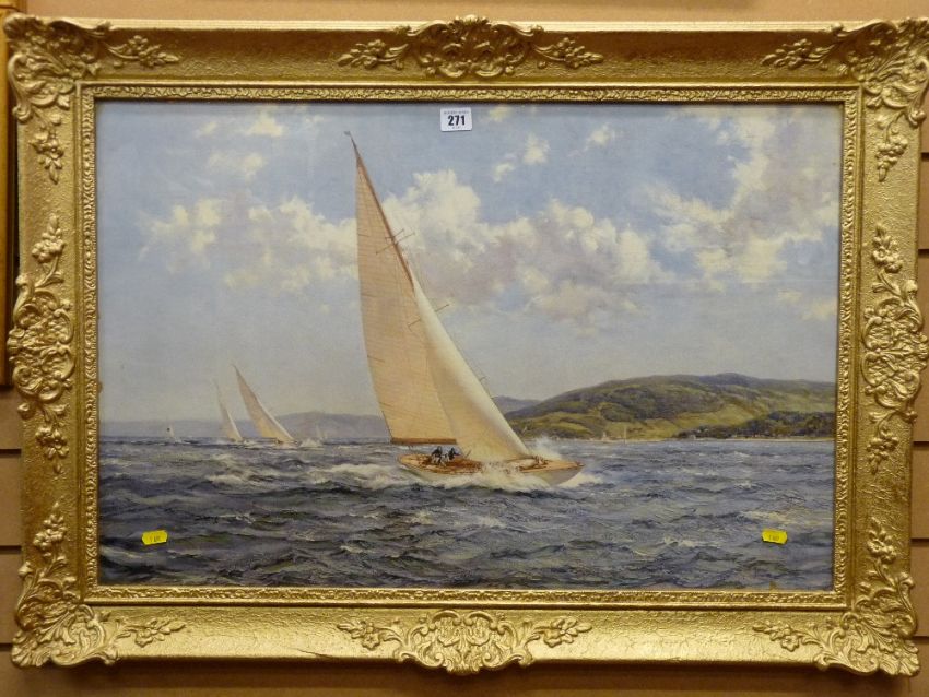 MONTAGUE DAWSON large framed print - yacht at full sail in a good gilt frame
