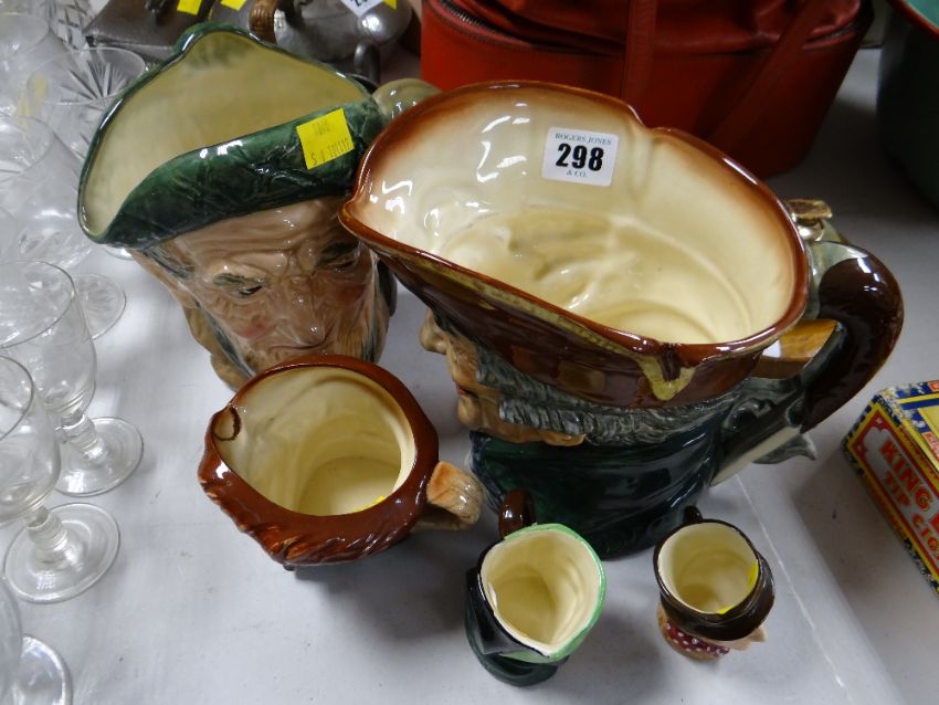 Five Royal Doulton character jugs including Dick Turpin, Francis Drake etc