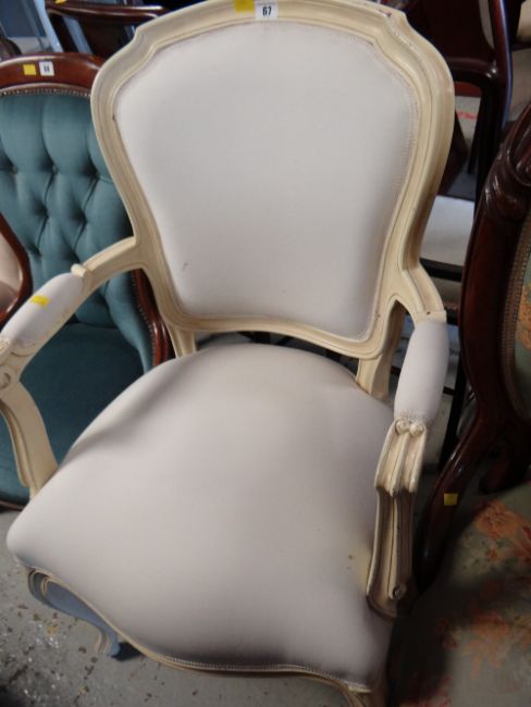 A white painted French-style elbow chair
