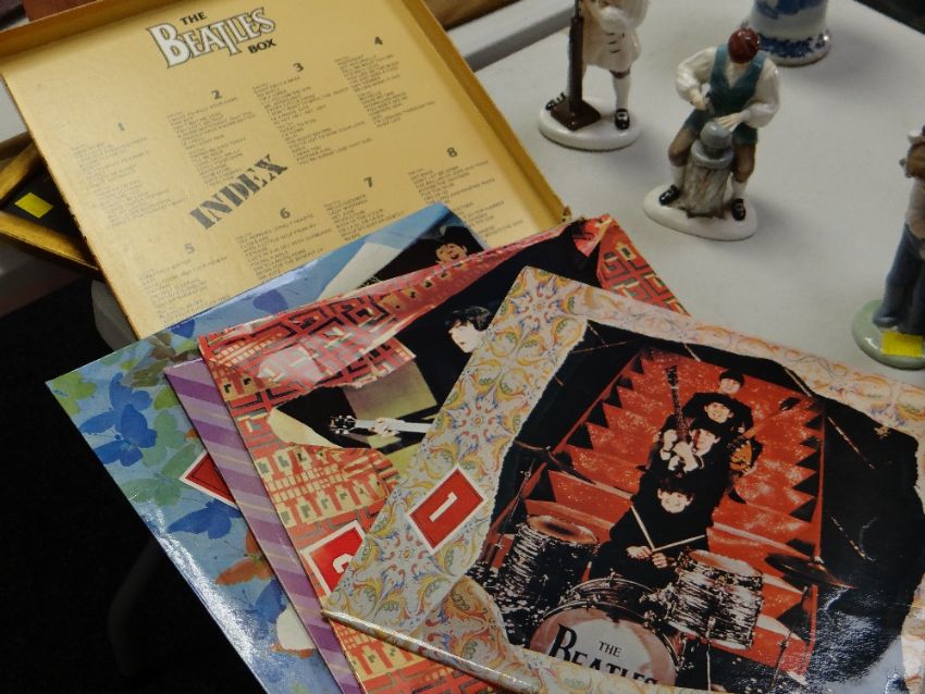 A box set of Beatles' LPs together with a John Lennon 'Mini Montage' limited edition photo negative set