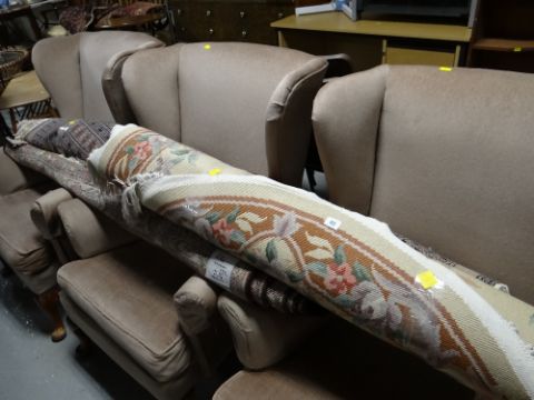 A Chinese washed oval carpet & two Persian similar