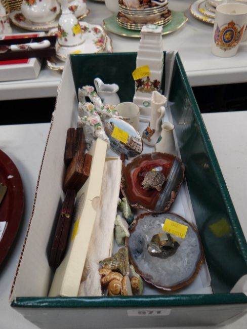 A parcel of crested china, treen boxes, Wade Whimsies etc