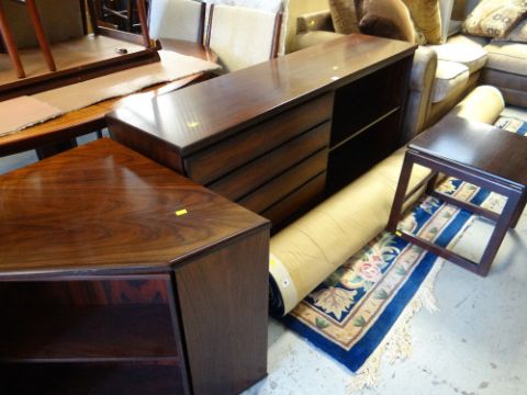 A Scanflex sideboard with a bank of five drawers & open shelves, together with a similar square top coffee table & corner unit