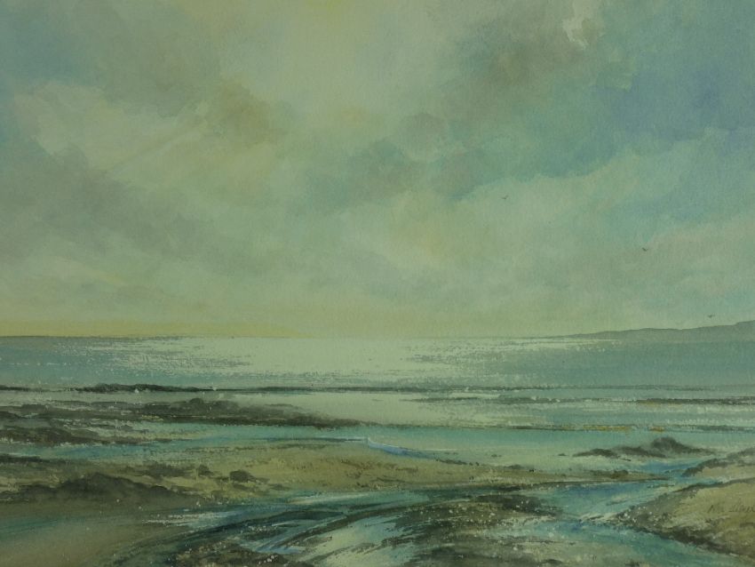NIA LLOYD HUGHES watercolour - sunset seascape, signed, 34 x 51cms