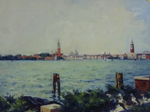 DAVID GRIFFITHS oil in a box frame - Venetian scene, signed in full, 40 x 56cms