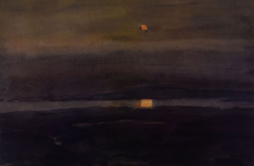 SIR KYFFIN WILLIAMS RA limited edition (141/150) coloured print - sunset over estuary with reflection, signed fully in pencil, 38 x 56 cms
