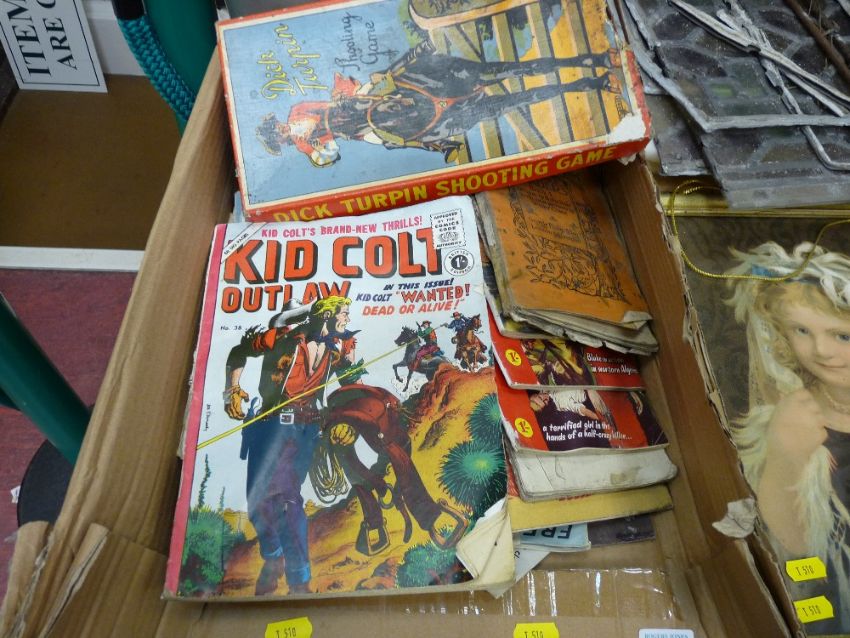 Quantity of children's games and comics including 'Dick Turpin' shooting game, issues of 'Sexton Blake' etc