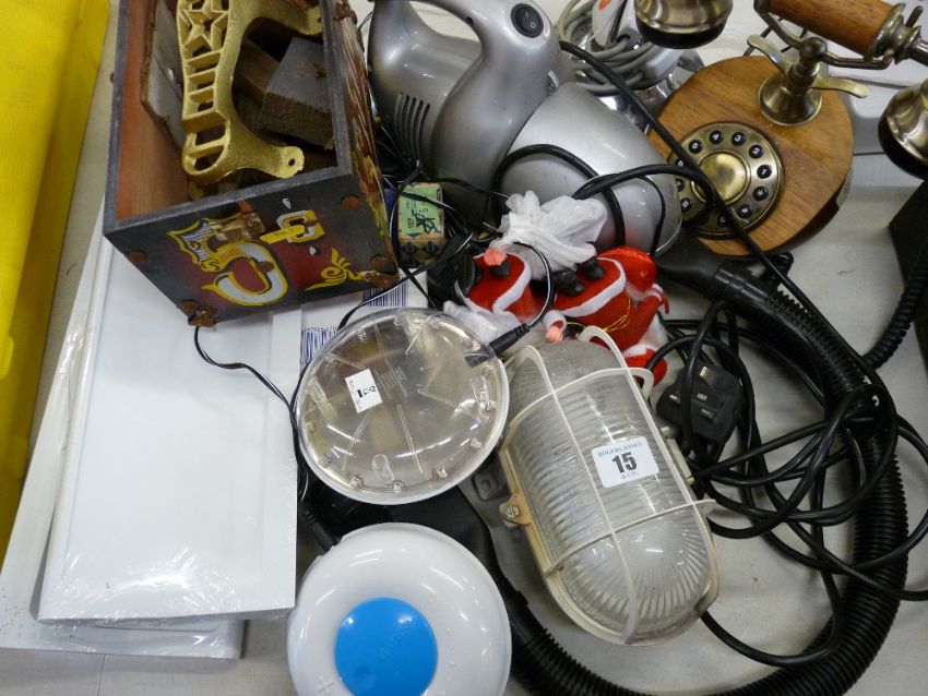 Mixed parcel of items including lighting, vintage telephones, portable vacuum cleaner etc E/T