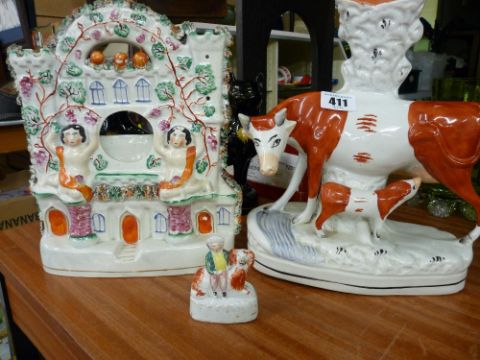 Three Staffs pottery ornaments; spillholder, watch-holder etc