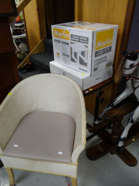 A loom-style commode chair, over bed table & other boxed home living aids