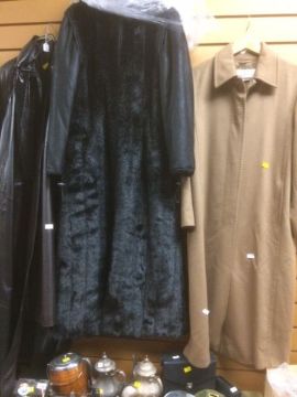 Four vintage coats including two full length leather coats, a full length cashmere Max Mara coat & a faux fur full length coat