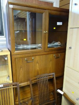 A G-Plan dark wood lounge display cabinet with pull down front