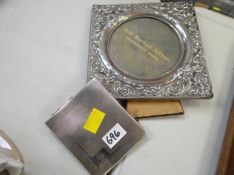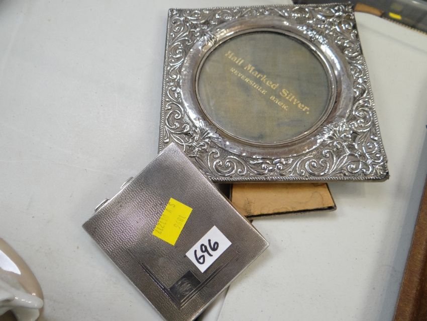 A twentieth century silver easel portrait mirror together with a silver machine turned cigarette case