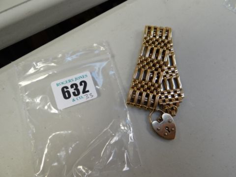 A 9ct yellow gold gate bracelet & heart shaped padlock, 33gms
