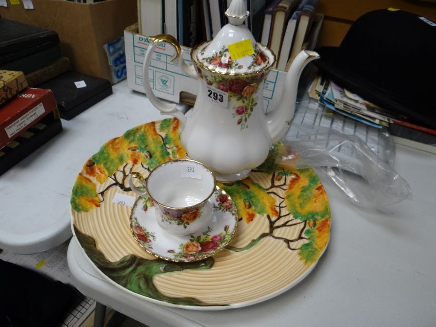 Royal Albert 'Old Country Roses' pattern teapot, cup & saucer together with a Carltonware 'Autumn Leaves' wall plaque
