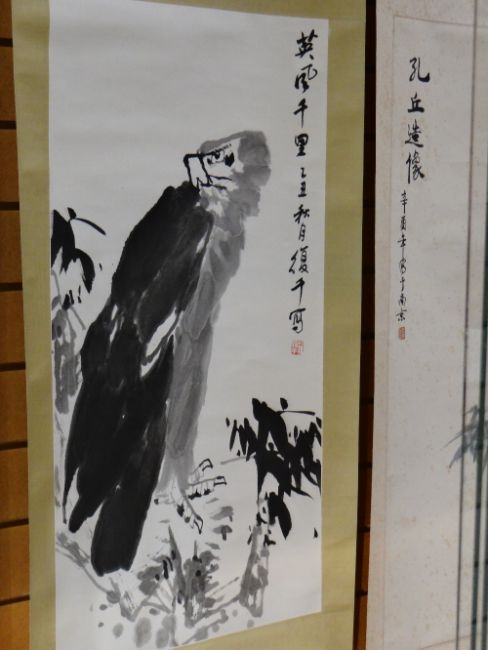 Five interesting Oriental silk scroll pictures (some boxed)