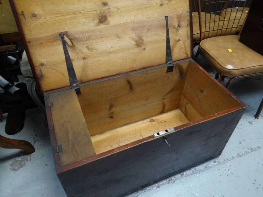 Vintage stained pine blanket chest with internal shelf & carry handles