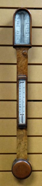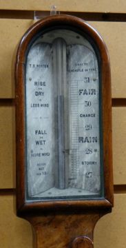 A NINETEENTH CENTURY WALNUT ENCASED STICK BAROMETER by T B Winter of Grey Street, Newcastle-on-Thyme, 91cms highThe barometer looks in very nice shape, there is slight general wear to some of the corners, nothing major, dirty and dusty, the gauge roller movement is nice, unsure if it works but the mercury inside seems to go up and down, it looks like it would work.