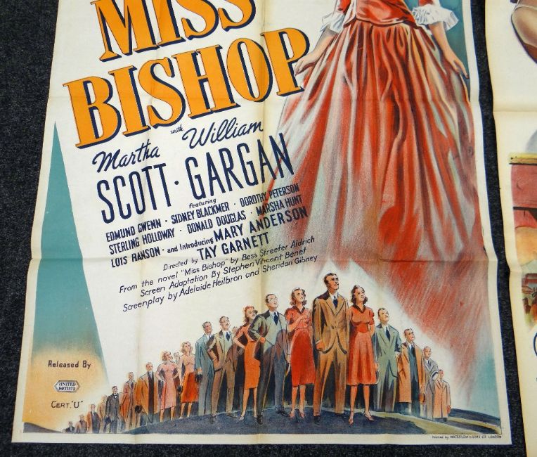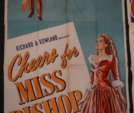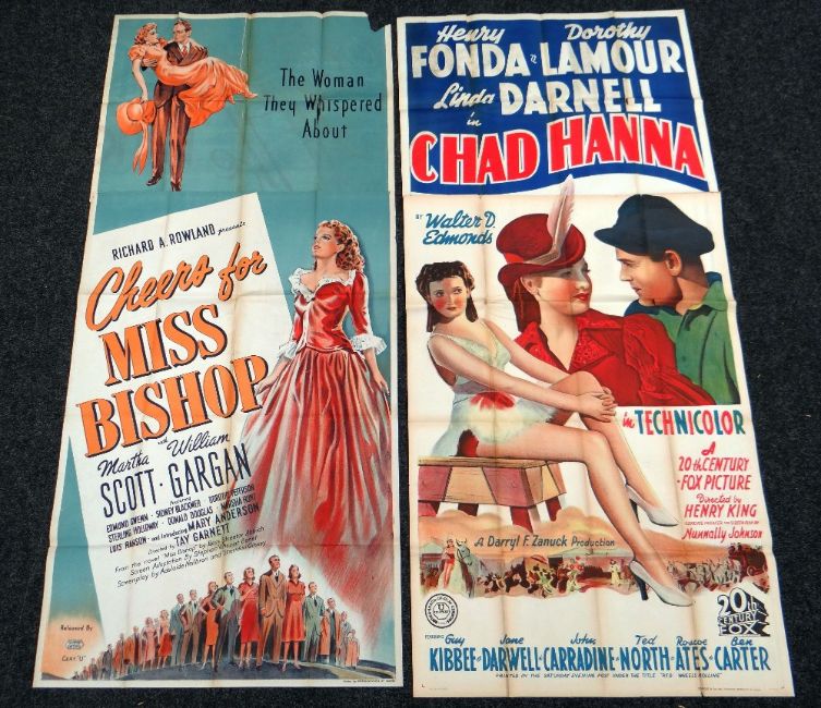 CHEERS FOR MISS BISHOP & CHAD HANNA two original UK cinema posters from the 1940's, posters are numbered, folded and in two sections, wear around fold lines and small paper loss, each poster measures 220 x 100cms (six-sheet)