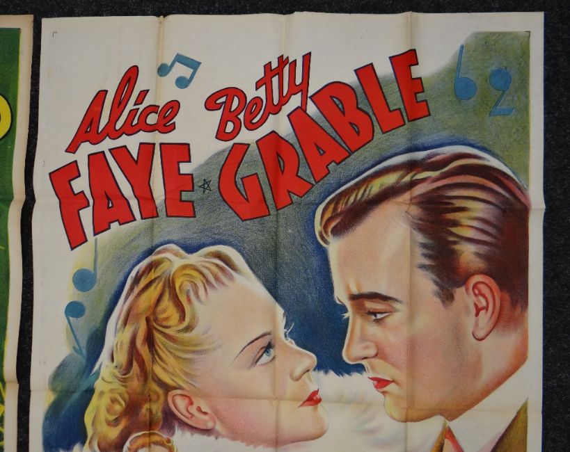 FREEDOM RADIO & TIN PAN ALLEY two original UK cinema posters from the 1940's, posters are numbered, folded and in two sections, wear around fold lines, each poster measures 220 x 100cms (six-sheet)