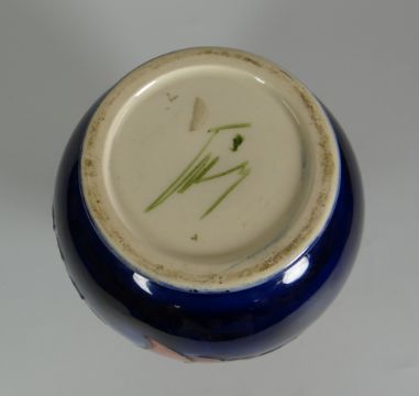 A MOORCROFT BLUE GROUND FLORAL BALUSTER VASE with narrow neck, 18cms high