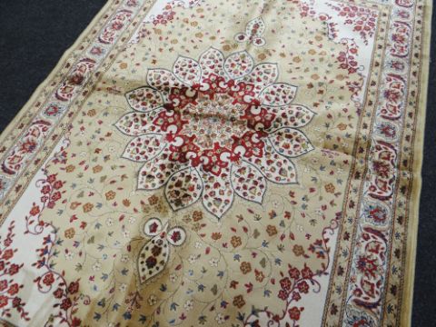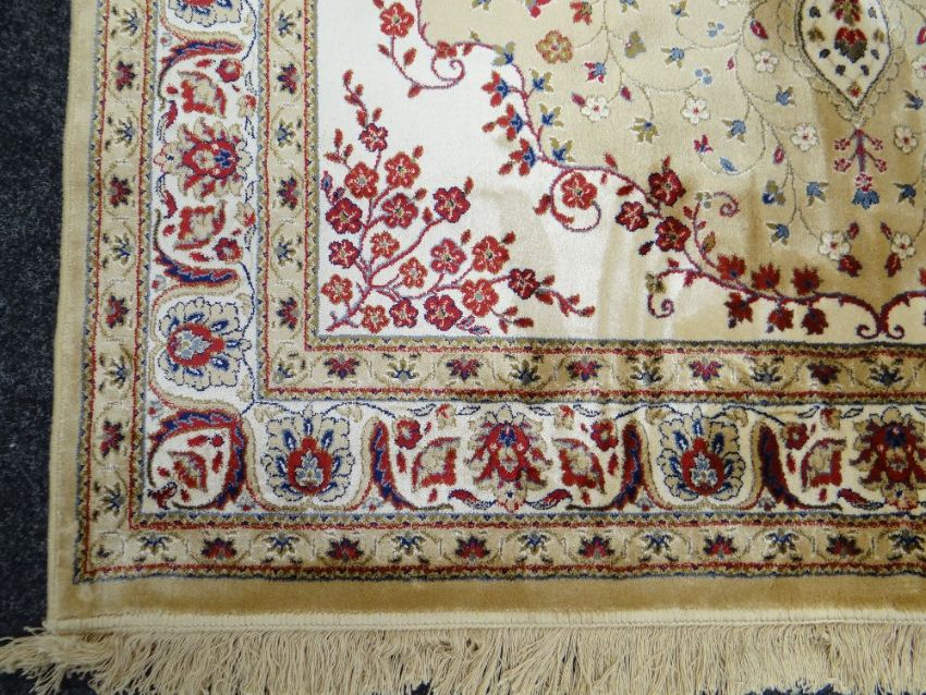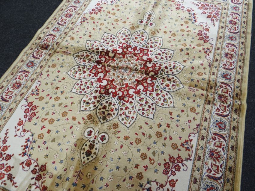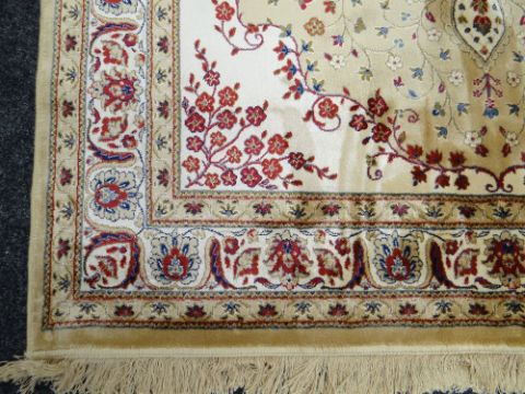KASHMIR RUG gold ground medallion design, 154 x 227cms