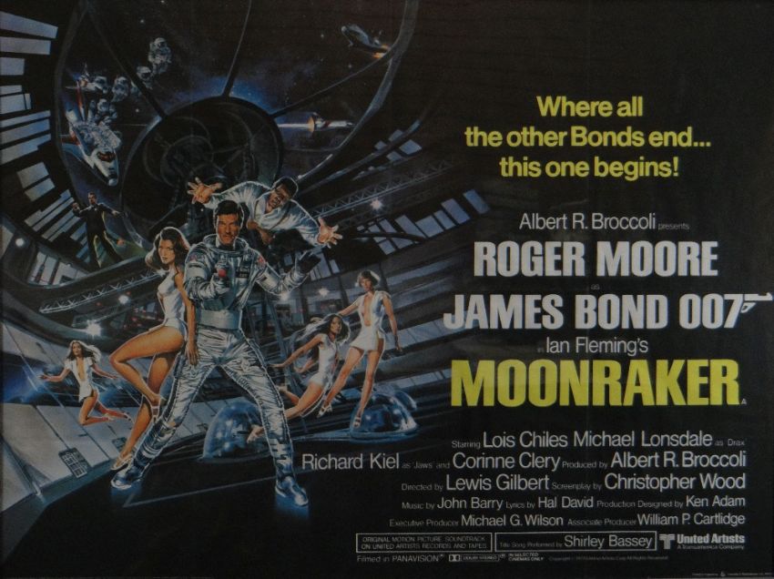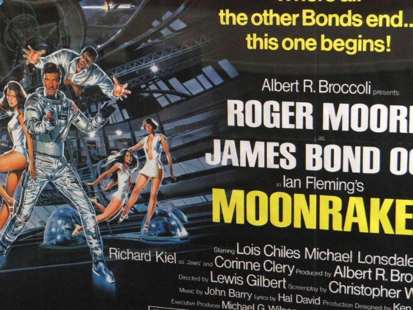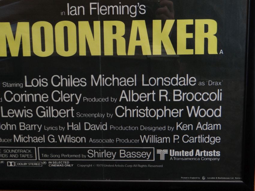 MOONRAKER original UK cinema poster from 1979, printed by Lonsdale & Bartholomew, folded, framed, near mint condition, 76 x 101cms (30" x 40" UK quad size)