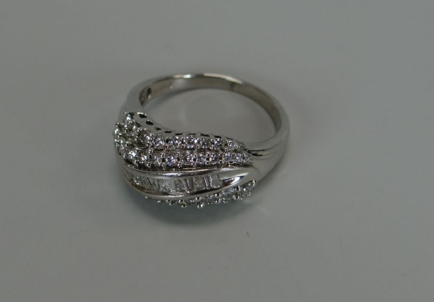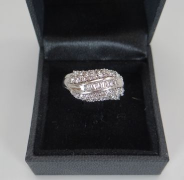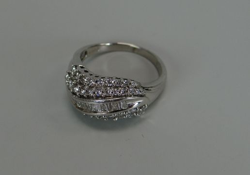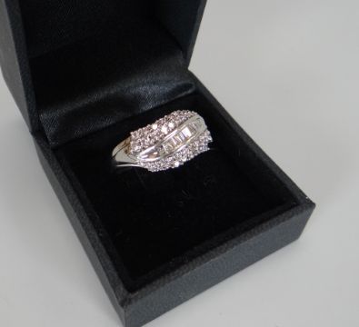 A MODERN 18CT WHITE GOLD DIAMOND CLUSTER RING