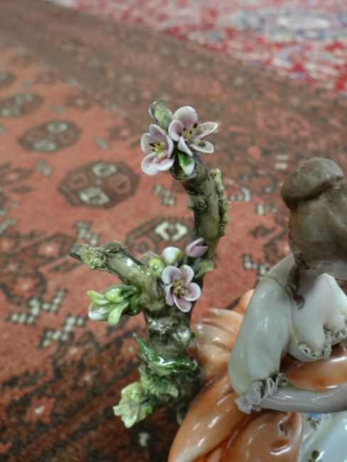 A MEISSEN PORCELAIN FIGURINE OF TWO LOVERS with lamb at their feet, together with a Capodimonte figurineThe tips of the branches seem to be broken and missing, otherwise all good
