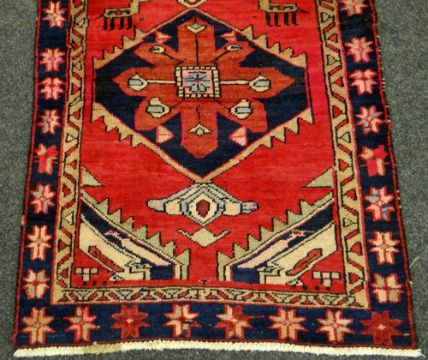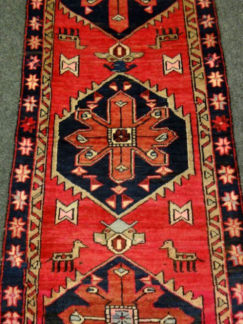 PERSIAN 'HERIZ' RUNNER CARPET in blue and pink ground, 256 x 89cms