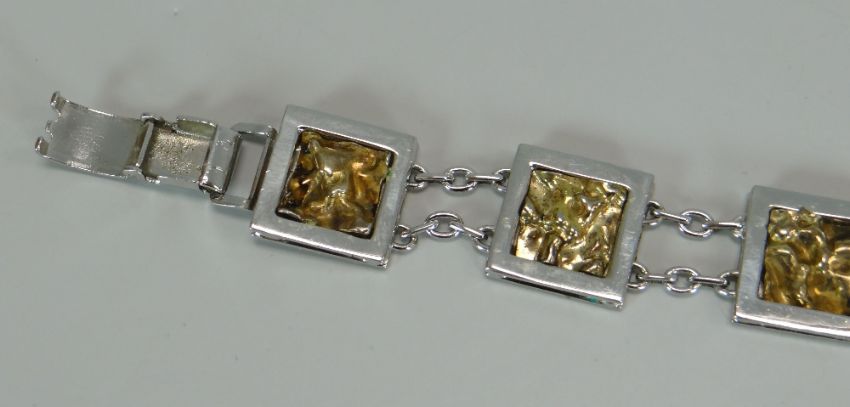 A BELIEVED SILVER & NATURAL GOLD TILE BRACELET, marked 925 and with 230 next to a star hallmark