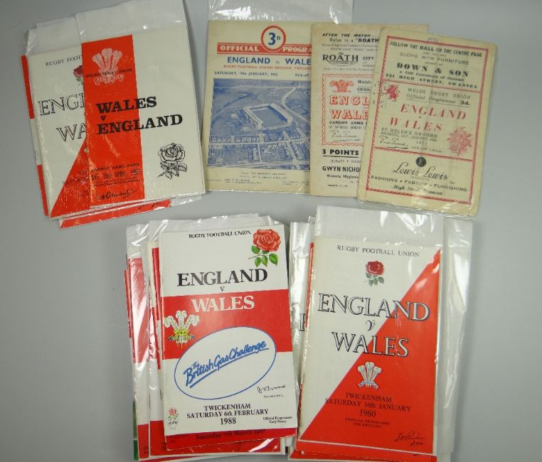RUGBY UNION - approximately 200 rugby programmes Wales vs Scotland, Wales vs Ireland, Wales vs England and Wales vs France, dates range from the 1950's to the 1990's