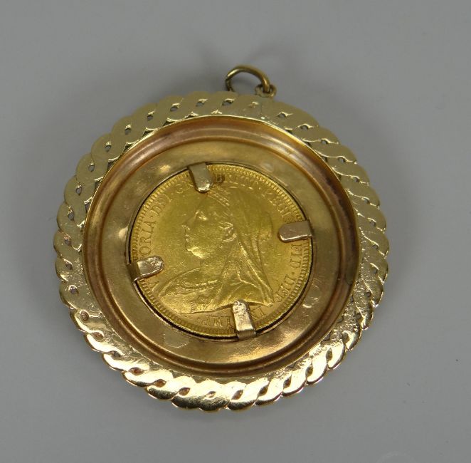A 1903 GOLD FULL-SOVEREIGN in a non-marked believed gold pendant-mount, total weight 14gms