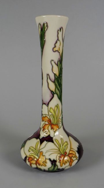 A 2006 MOORCROFT LIMITED EDITION (8/99) LONG NECK VASE in the Gladioli pattern, 21cms high