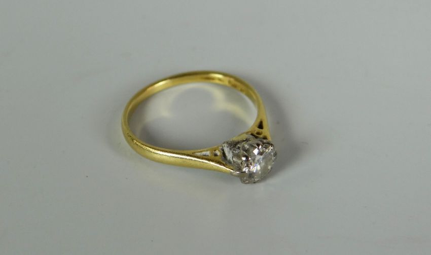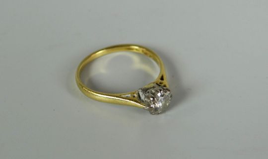 AN 18CT GOLD DIAMOND SOLITAIRE RING being round cut in an eight claw setting, visual estimate 0.45ct, 2.6gms Provenance: Estate of Helen Zienkiewicz Deceased (1926-2016) late wife of Olgierd Cecil Zienkiewicz CBE FREng, FRS (1921 - 2009) acclaimed Polish-British mathematician & civil engineer https://en.wikipedia.org/wiki/Olgierd_ZienkiewiczThe size is O/P