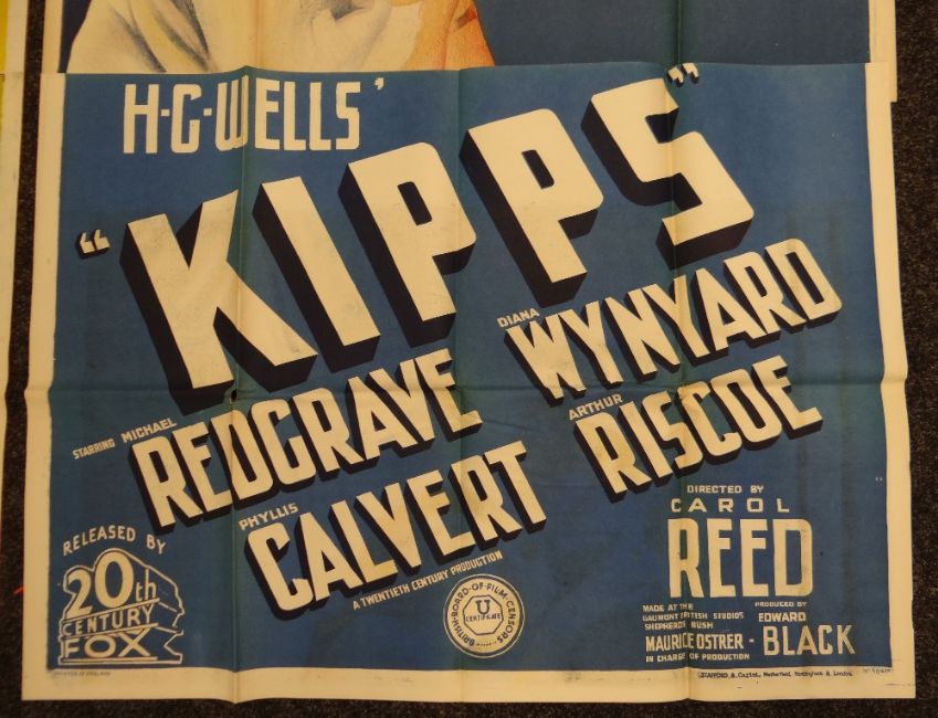 THE LADY IN QUESTION & KIPPS two original UK cinema posters from the 1940's, posters are numbered, folded and in two sections, wear around fold lines, each poster measures 220 x 100cms (six-sheet)