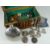 A NOVELTY 'SOUVENIR' MARQUETRY BOX & CONTENTS including silver watch-chains, coinage, nautical hip flask, three campaign medals (awarded to two different personnel and one unnamed) coinage, pocket compass and pocket-watch etcThe writing around the rim of the medals readsThe great war for civilisation medal says 171167 GNR.B.Poley RAThe defence medal has nothingThe other just has the name Demetrios Tsitseli