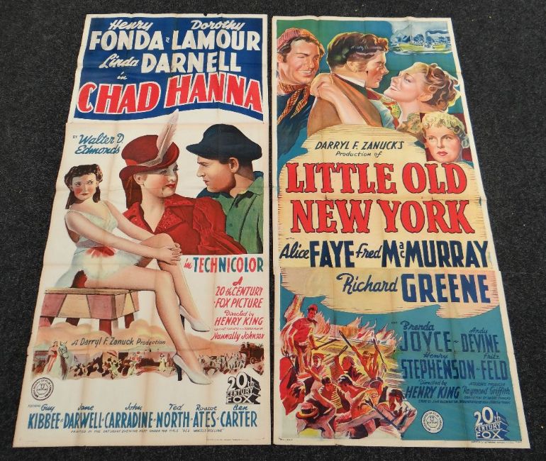 LITTLE OLD NEW YORK & CHAD HANNA two original UK cinema posters from the 1940's, posters are numbered, folded and in two sections, wear around fold lines, each poster measures 220 x 100cms (six-sheet)
