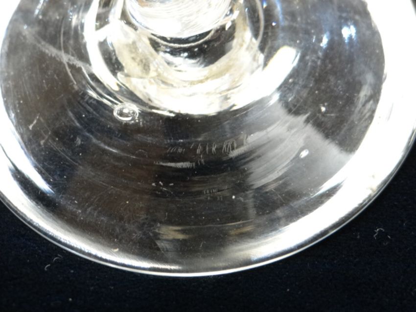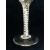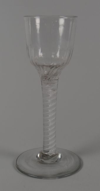 A MID-EIGHTEENTH CENTURY OPAQUE TWIST STEM DRINKING GLASS having a fluted funnel shaped bowl over a slightly conical spreading foot, 14cms high