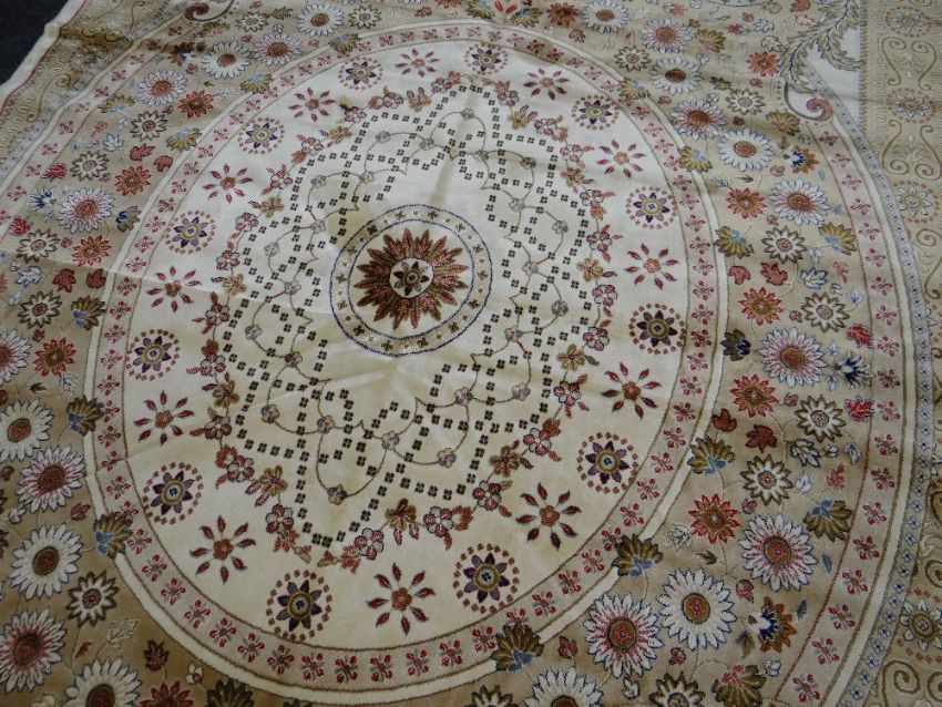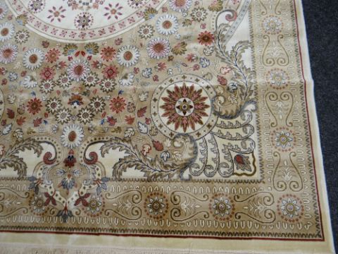 KASHMIR CARPET ivory ground with unique medallion design, 300 x 191cms