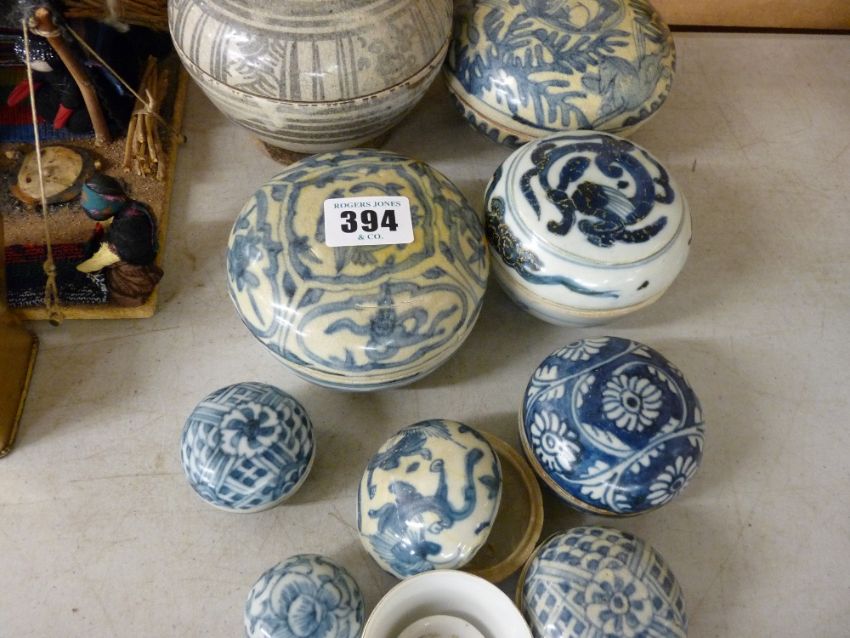 Quantity of mainly blue and white Oriental trinket and similar porcelain boxes