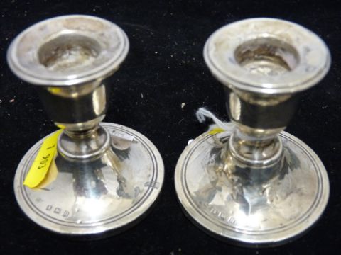 Pair of short stemmed silver candleholders