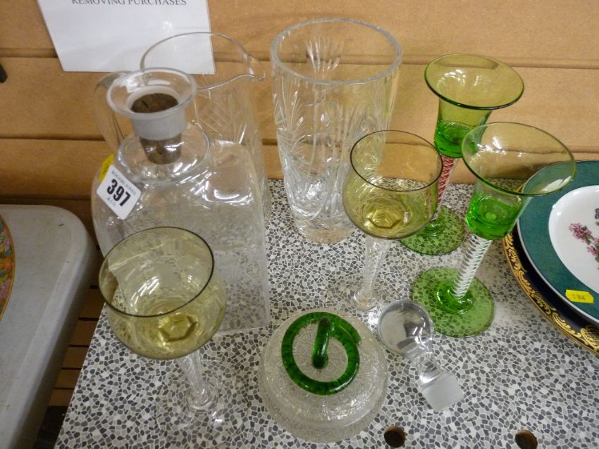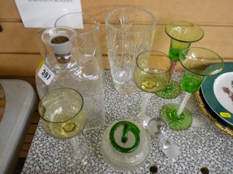 Small parcel of drinking and other glassware including three stemmed wine glasses