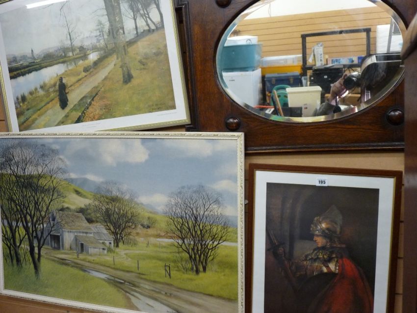 Framed print - man in armour and a good polished oak framed wall mirror