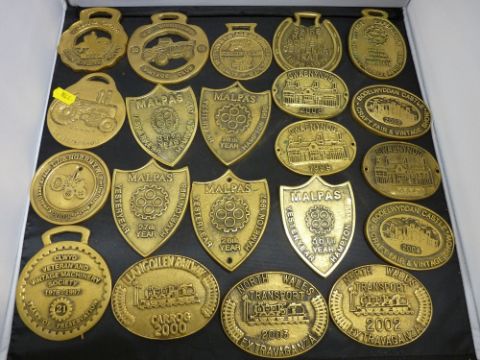 Collection of brass festival showplates and horse brasses